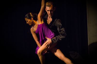 Tango is a dramatic dance with staccato accents that provide a nice contrast to some of the smoother, more fluid moves and step patterns. American and International style Tango, has more of a regular ballroom hold with a modification for the follower's left hand, versus a very close embrace which is specifically used for Argentine Tango. Tango is danced specifically to Tango music, the way Salsa is danced specifically to Salsa music (some ballroom/Latin dances can be danced to all types of genres).